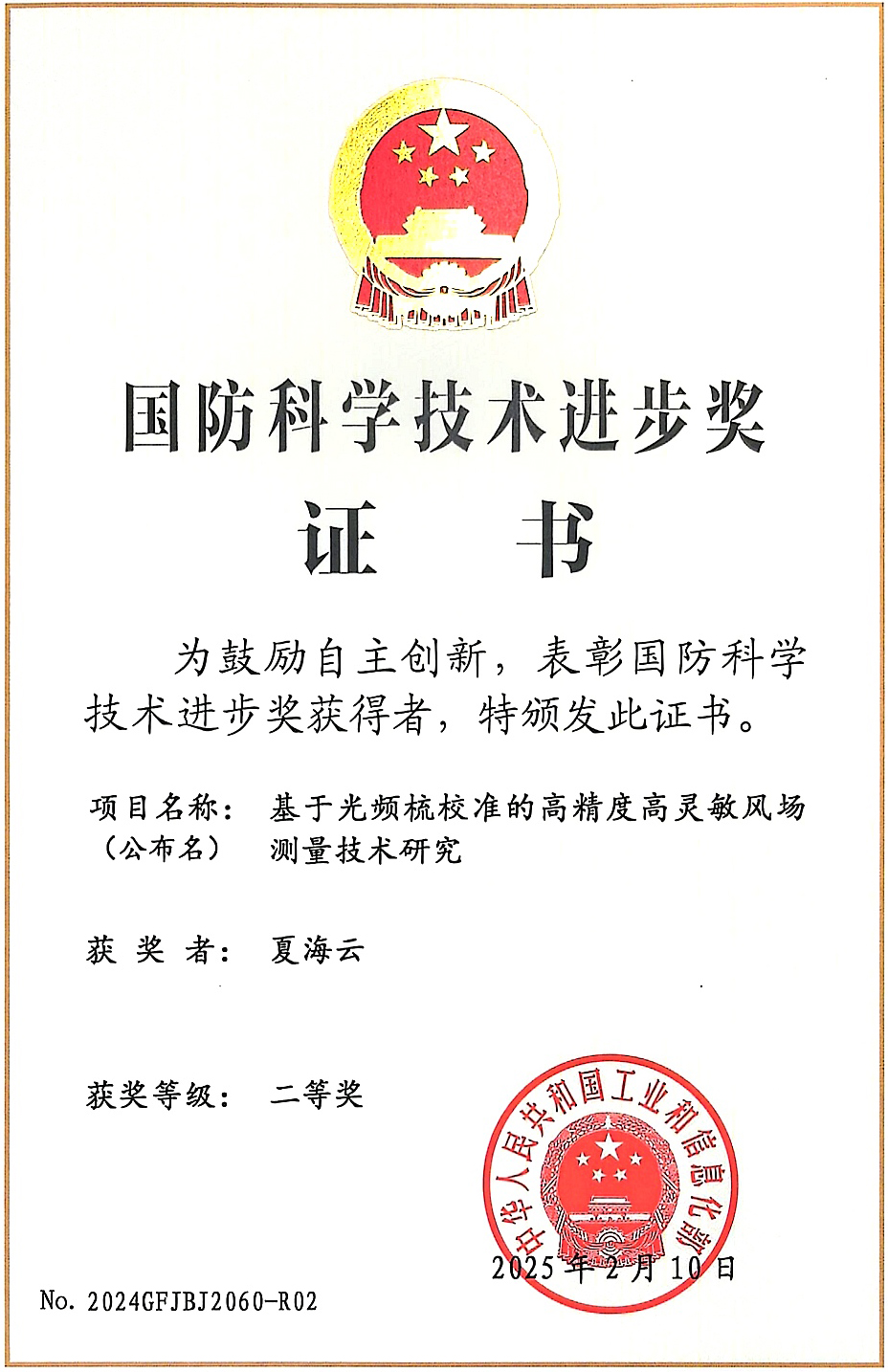 2020:“第六届中国激光雷达遥感学术会议”青年优秀论文(魏天问),中国光学工程学会理事(夏海云),江苏省第一批军民融合领军专家(夏海云),中国质量检验协会碳中和绿色发展专业委员会理事(夏海云),全国量子计算与测量标委会委员(夏海云)